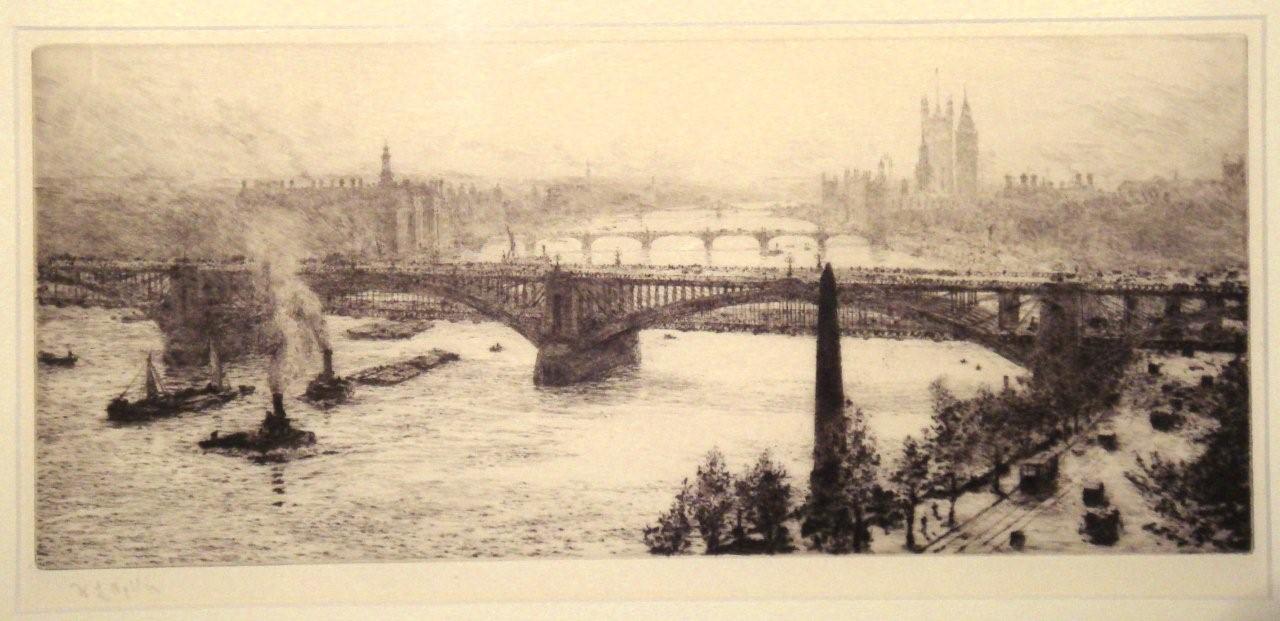 Today, interupting the Antwerp and Verpilleux postings I'ld like to share this remarkable woodblock (25x30 cm) print. The grain of the block is clearly visible and it's monogrammed FP in the block. The perspective and composition is reminding of James MacNeil Whistler's (1834-1903) "Nocturne": Battersea Bridge, Hiroshige, and other Japanese equivalents.