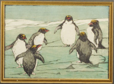 These two monotype prints standing out because of the use of the wonderful warm yellows and perspective. Had they only been block prints instead of one-offs.