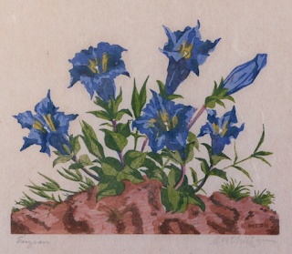 These prints are maybe not considered belonging to the highest regions of sophistication and artistic printmaking and probably are best described as "decorational". But they definitely have a certain charm and were never expensive. The flower prints are very reminding of Detmold printmaker Ernst Rötteken (1882-1945) (right) who's mission in life it was to provide Detmold households with "approved" yet affordable Art.